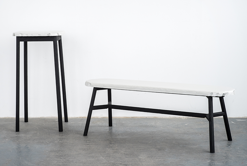 Smoked Edition. The heavy light weight collection is a series of concrete tables, which feature a thin concrete table top in combination with a smoked oak base. The designers use Opus Caementitium, which is the Roman equivalent of our modern concrete. The concrete surface is polished and created with a special moulding technique. The bench appears light due to its refined structure and smooth surface.