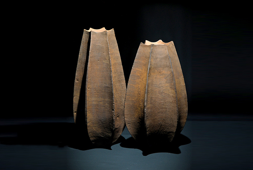 Ctenophora literally means “comb carrier” and it refers to some archaic organisms, closely related to jellyfish that are found in the water column. The artist’s work is inspired by simple life forms recurrent in nature. The way of sculpting and finishing the vessels aims to induce curiosity and change the perception of wood to lean towards metal, rust or stone.