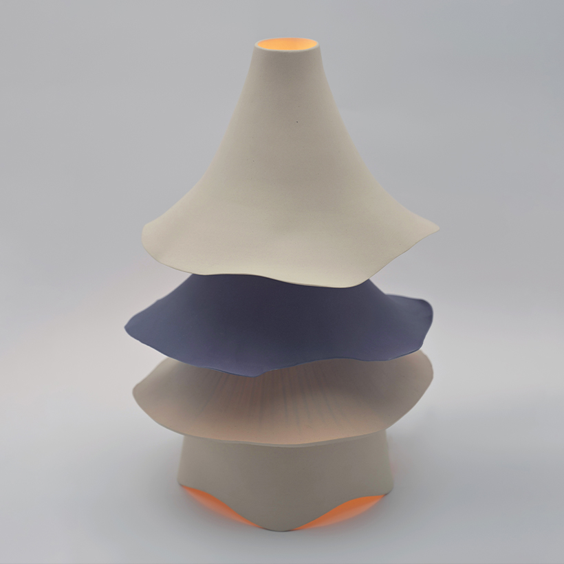 Zijian He is a ceramic designer based in London and Jingdezhen. His practice explores how natural light and ceramic surfaces can transform interior atmospheres. Inspired by the unpredictable deformations of clay in the kiln, his project Eclipse captures the dialogue between material and nature. Stacked forms and irregular textures interact with shifting light and shadow, evoking a sense of harmony without uniformity (和而不同). Through this approach, He reimagines ceramics as mediators between nature and space.