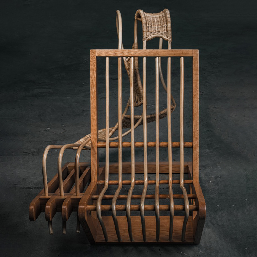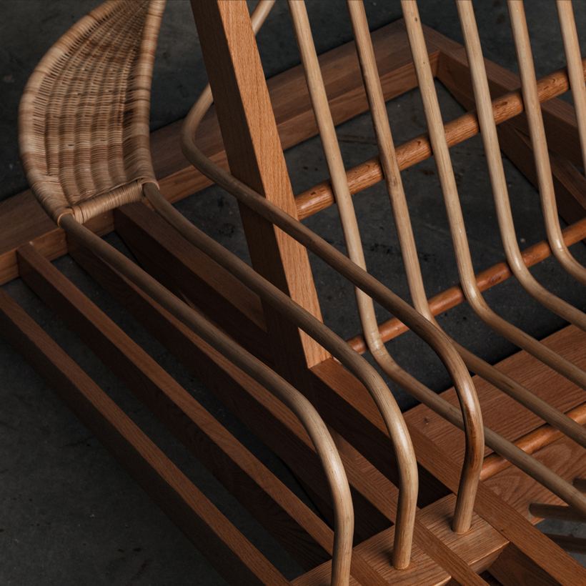 The inspiration for this enchanting chair comes from the meandering curves of mountains, rivers, and streams depicted in traditional Chinese landscape paintings. Wickers run through the chair legs, seat cushion, and backrest, extending outward, twisting , bending and rotating to form the armrests. The entire graceful structure resembles the winding curves of streams flowing through mountains.