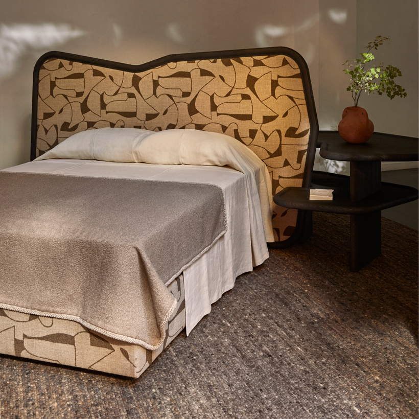 The IBO Bed and Bed Console, fashioned in Kenai Fabric are available in Queen size, California king size and King size.