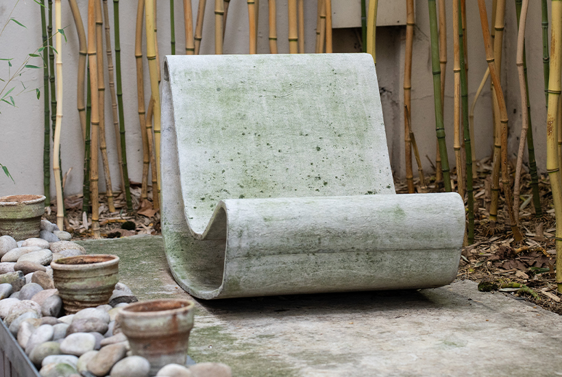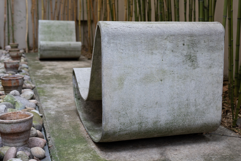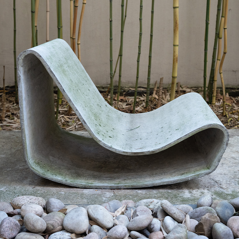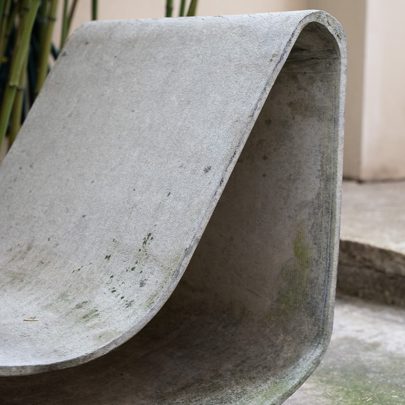 Though equally striking indoors, the chairs come alive outdoors, where concrete meets stone, grass, or earth. Over time the material continues to weather gracefully, developing subtle tonal variations and a character that allows the pieces to settle naturally into their surroundings.