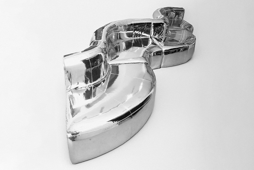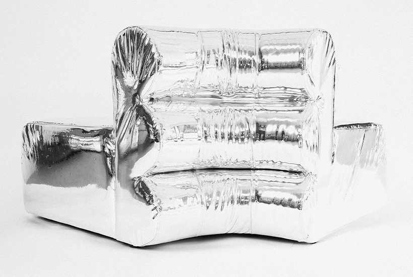 The MOON SOFA series was born from the idea that design, like the lunar phases, should be ever-evolving—versatile, reflective, and endlessly adaptable. This silver, mirror-finish, deadstock fashion material modular sofa embodies that philosophy, with its fluid, celestial-inspired forms echoing the soft curves and enigmatic glow of the moon. A statement piece yet inherently adaptable, it invites the viewer to lose themselves in its seamless design, much like gazing into the infinite vastness of the cosmos. Composed of three distinct modules (A,B,C), the sofa can be reconfigured into multiple shapes, offering various possibilities for spatial composition.