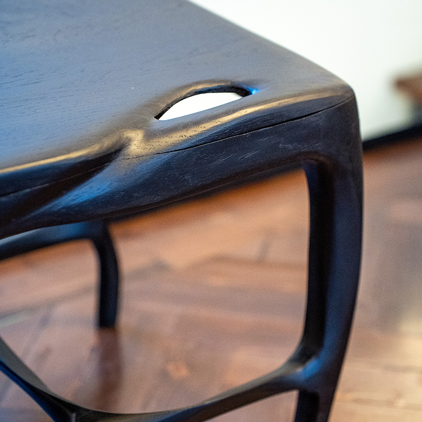 Paul Salet works with wood often in oak or beech, transforming them into seats, tables, and other pieces. He doesn’t make chairs from scratch but reshapes and liberates them, inspired by nature and the idea of giving old furniture a new life. Responding to today’s disposable culture, Salet remodels discarded pieces through careful sawing, planing, and sanding, creating functional and unique furniture.