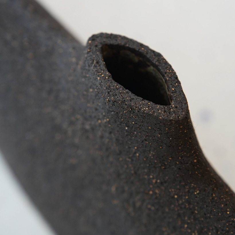 Raw Resonance is rooted in drawing as the starting point for sculptural exploration. This series delves into the interplay of light, form, and space, emphasising the purity of the raw material while continuing to challenge the boundaries of conventional hand-building and surface treatment techniques. By eliminating the superfluous and refining core elements, each piece balances functional clarity with sculptural presence. Throughout the collection, the designer intentionally shifts the centre of gravity— displacing the visual or physical balance point—while maintaining a precise sense of formal equilibrium. This subtle tension between control and disruption underlines the emotional and tactile resonance she seeks to evoke, allowing the pieces to hold space with quiet strength and architectural clarity.