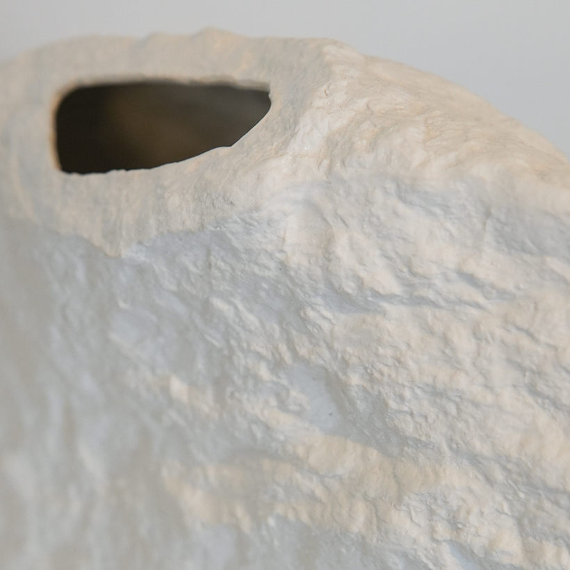 The Urban Solids series is born from attentive walks through the city — a practice of gathering, observing, and responding. Artist Heloísa collects fragments of stone from urban groundscapes, where nature and human intervention collide. Unlike her previous works shaped by organic forces like water and time, these pieces carry the sharp angles, breaks, and scars of human interference.