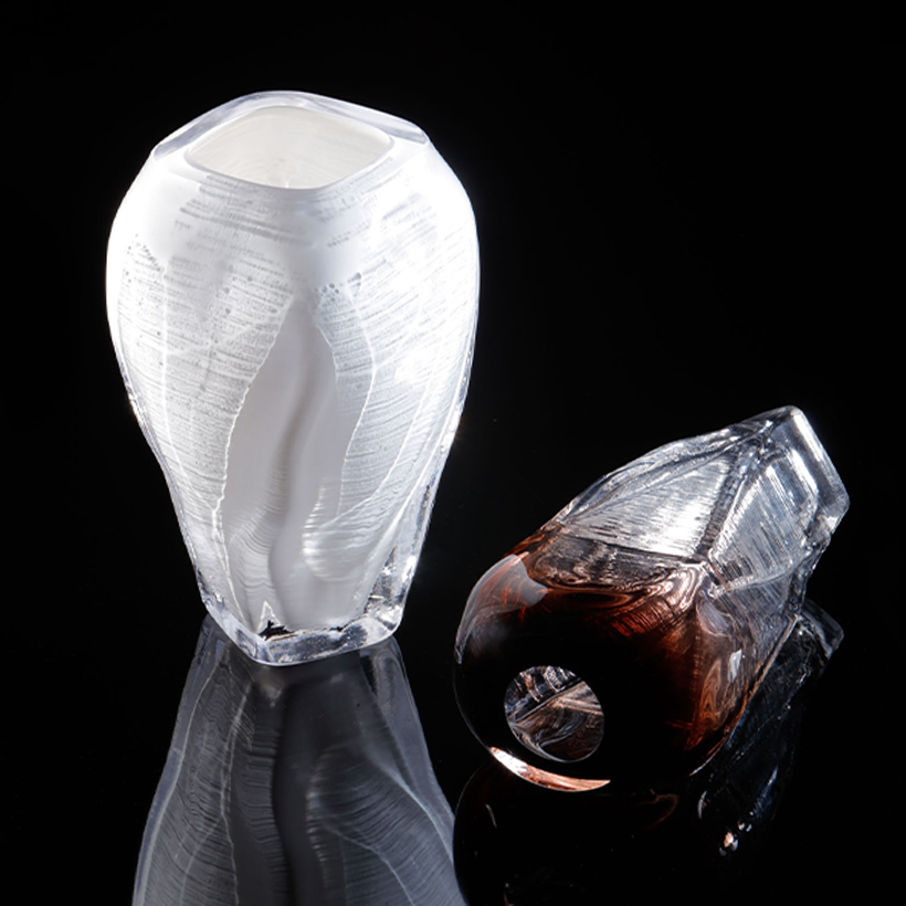The Dialogue is a collection of ceramic and glass vessels inspired by Qing Dynasty forms. The series investigates the relationship between ceramics and glass through 3D printing and mould blowing, creating layered textures that reveal the interaction between traditional materials and contemporary techniques. The works reinterpret historical forms while bridging cultural heritage with a contemporary, functional approach.