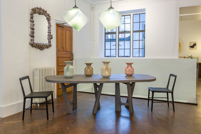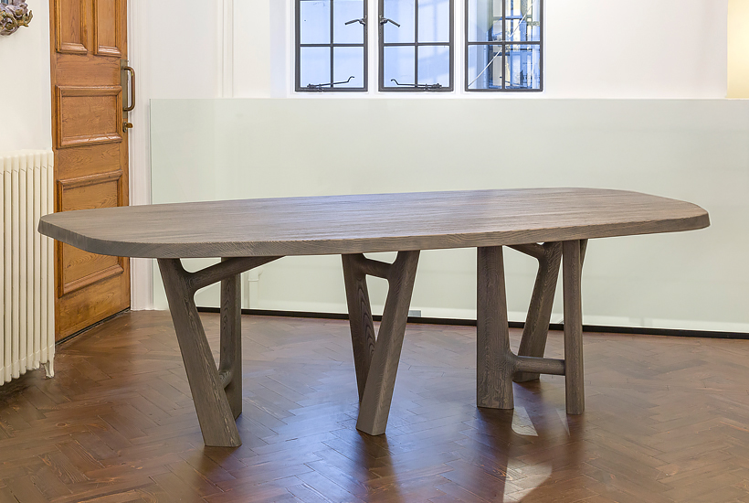 This organic tabletop is supported by a playful leg design, creating an exceptionally inviting and functional table that adds a subtle opulence to any interior space. Designed by Jean-Pierre Tortil.